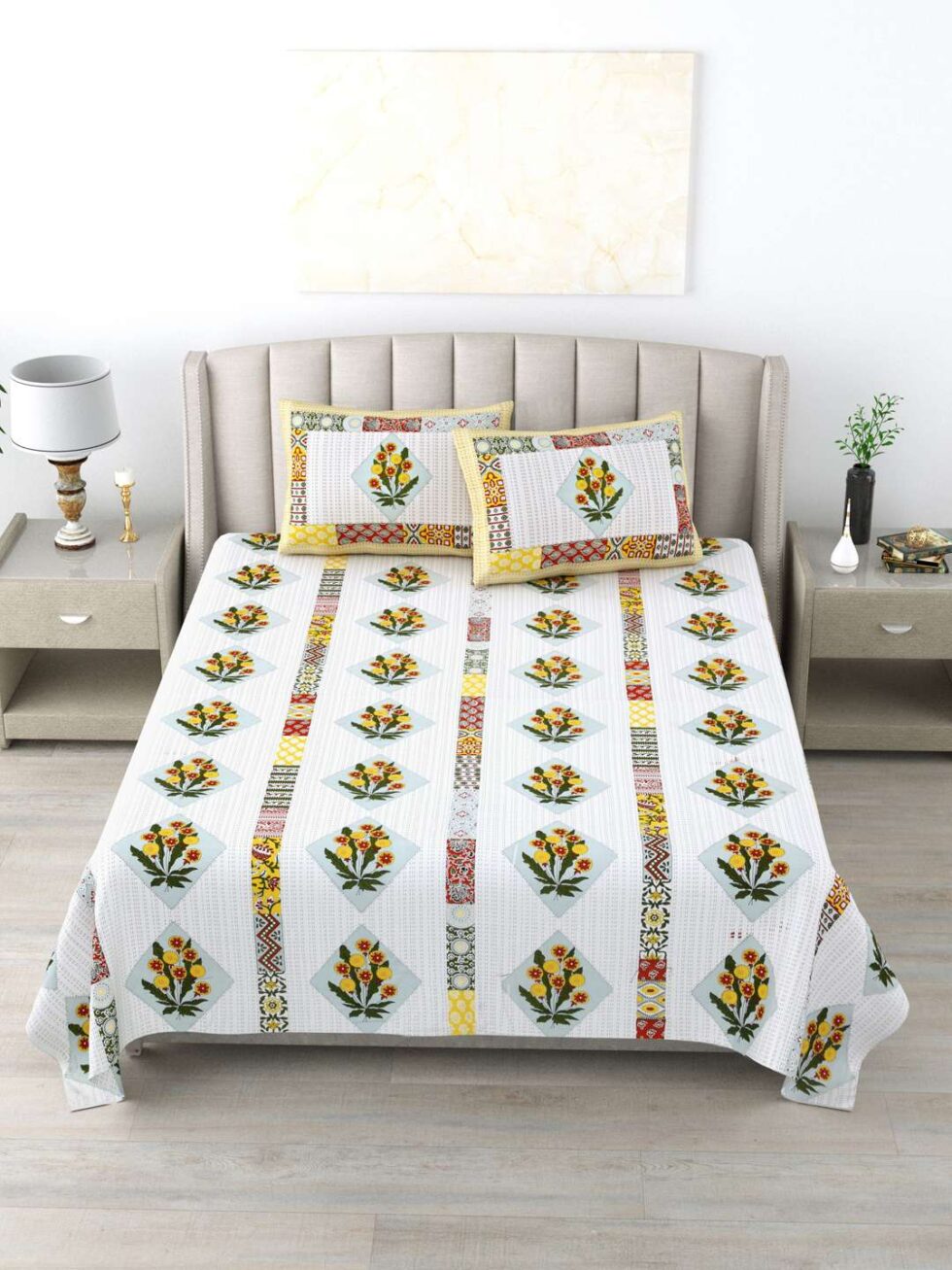 100% Pure Cotton Traditional Printed Bedsheet for Double Bed King Size Bedsheet with 2 Pillow Covers